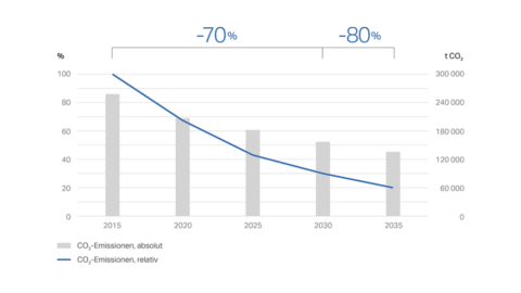 Diesen erfolgreichen Weg setzt Geberit mit der neuen Strategie zur Reduktion des CO2-Ausstosses fort. Dabei setzt das Unternehmen auf kurz- und mittelfristige Ziele, um eine langfristige Wirkung zu erzielen. Ziel ist es, die CO2-Intensität* jährlich um 5 Prozent zu senken. Bis zum Jahr 2035 sollen damit die relativen CO2-Emissionen im Vergleich zu 2015 um 80 Prozent sinken.