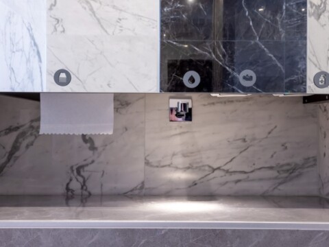 30 Jahre später haben die Eigentümer die pandemiebedingt erzwungene Spielpause für die Komplettüberholung der Sanitärräume genutzt. Die insgesamt 15 Räume sind mit Installationssystemen und Keramiken von Geberit ausgestattet. Unter anderem wurden Rimfree-WCs aus der Badserie Acanto eingebaut mit integrierter Geruchsabsaugung und QuickRelease-Scharnieren der Sitze, um den Deckel mit einem Handgriff für eine einfache Reinigung zu entfernen. Viel Aufmerksamkeit wurde auf Produkte gelegt, die ohne Berührung funktionieren. So kamen Geberit Waschtischarmaturen, Urinale und Betätigungsplatten mit kontaktfreier Bedienung zum Einsatz.