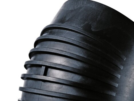 Geberit Silent-db20 pipes and fittings are made of mineral-reinforced PE-S2. This increases their weight and reduces the natural vibration, therefore effectively insulating the sound they generate. Additional sound insulation ribs are installed in the impact zones to reduce the development of noise. Finally, system pipe brackets on the wall and ceiling fasteners decouple the system from the building structure and prevent the transmission of sound.