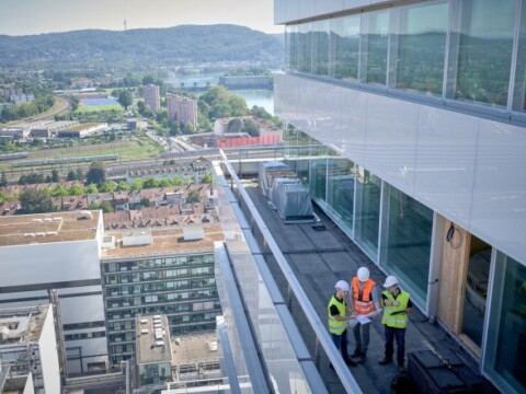 The pharmaceutical giant Roche will be moving in to its new offices in the Roche Towers in Basel (CH) at the end of 2021. While the first tower has already been completed, the second has reached its planned height of 205 metres, making it the tallest building in Switzerland at the time of writing. The two striking buildings from Basel-based architects Herzog & de Meuron are already dominating the skyline of the Swiss border city.