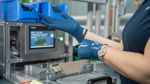 No, it’s not kid gloves that Prolet Maganova puts on. Instead, the production worker uses protective gloves at the Sigma40 actuator plate assembly station. This applies to all assembly stations in the production hall at Geberit headquarters in Rapperswil-Jona – and there are seven in total.